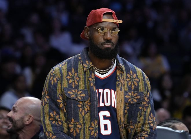 湖人勒布朗·詹姆斯对布朗尼和里夫斯的精彩空接配合,做出反应